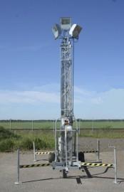 Belysningsmast 4-12 meter inklusive helautomatiskt driftdonsskåp samt 3 st metallhalogenarmaturer. Driftdonsskåpet till lysmasten är försett med automatik för tänd/släck. Mekanisk timer, ljusrelä samt manuellt från/till. Teleskopmasten har en extra kraftig fackverkskonstruktion. Utfällbara ben samt kraftiga gummihjul. Teleskopmasten är varmförzinkad. Vikt 260 kg exkl.armaturer