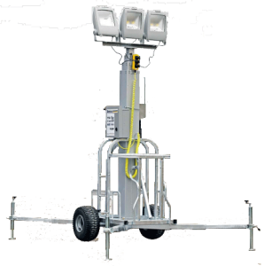 Utfällbara stödben och mast med telskopkonstruktion upp till 8,2 meter. Försedd med kraftiga gummihjul och kan transporters på pall.