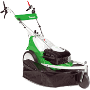 Specialgräsklippare för till exempel ängar med högt gräs, sluttningar,väggkanter, fruktträdgårdar liksom trädgårdar med vildvuxna partier. 3-hjulskonstruktion med stora bakhjul och vridbart framhjul, 360°, som också kan justeras i höjdled gör den mycket lättmanöverrad även i ojämn terräng. Chassi aluminium, Öppen framtill för att klara stora mängder gräs. En klippare som klarar och tål det mesta.
