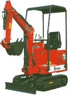 Hinowa DM8 runtomsvängande minigrävare på 1 ton. Med störtbåge och tak men utan hytt som minskar vikt och möjliggör transport på släp som klarar 1000 kg och dessutom med vanligt körkort.