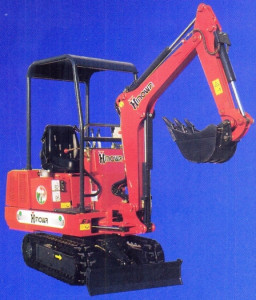 Tekniska data:Vikt 930 – 1000 kg Grävdjup max 2,20 m Bredd 780 – 980 mm, Bandbreddning Sväng 360/90+45 Motor Perkins Diesel 10 hk Tillbehör: Normalskopa 3 tänder 300 mm Kabelskopa 230 mm Planeringsskopa 550 mm Anpassat transportsläp för bil ingår i hyran.