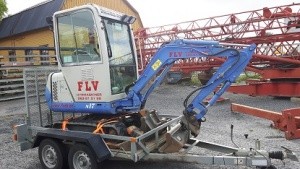 Nagano N17 runtomsvängande minigrävare på 1,7 ton med hytt. Utrustad med schaktblad för mindre schaktarbeten.