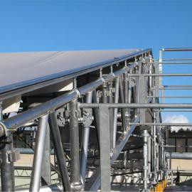 Skenorna är avpassade i längd till fackverken och fästes snabbt och enkelt med skenfäste och låssprint. Skenorna skarvas med skarvlås och packning. I nock monteras en nockrulle för duksträckning och förenklat dukmontage och i takfot duksträckare.