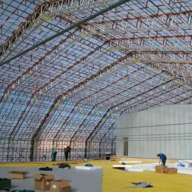 HAKITEC 750 täcks med fördel in med HAKI Trak system eller HAKITEC duk på uppstagande skyddsräcksramar SKRD/SKRH med hjälp av fästbalkar.