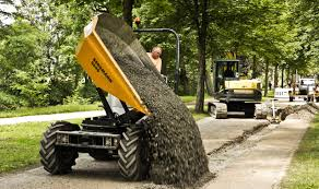 Smidig hjul dumper från Tyska Bergman med sido tipp. Dumpningshöjd 1540 mm. Markfrigång 360 mm.