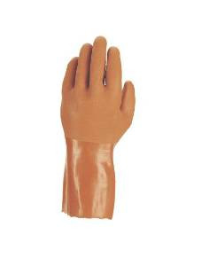 Handske med krage i ett stickat foder som är heldoppad i PVC. Detta ger handsken en mycket god flexibilitet. Handsken tål allt från oljebelagda maskindelar till fett och frätande syror. Handskens PVC-beläggning gör att den är mycket slitstark och behåller sin mjukhet i kyla. Säljes parvis.