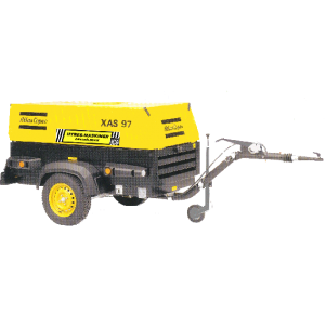 Transportabel, ljuddämpad kompressor passande för luft till mejselhammare, borrmaskiner, gejare etc.
