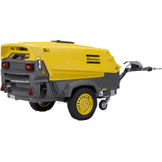 Transportabel, ljuddämpad kompressor passande för luft till mejselhammare, borrmaskiner, hejare etc.