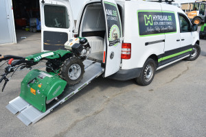 Smidig hopfällbar lastramp som underlättar lastning och lossning i bil eller på släpvagn.