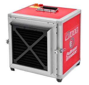 Kompakt konstruktion med ett flöde på 1000m3/tim. Kan köras i två hastigheter. H13-filtret som klarar asbest kraven och är försett med petskydd. Utrustad med dubbla varningslampor med signal. Röd lampa för läckage – trasigt filter, orange lampa för igensatt filter 90%. Luftutblåset är riktat 90º från inloppet och försedd med utloppsstos på Ø160mm, för anslutning av evakueringsslang (max 8m). Luftrenaren är som standard utrustad med timräknare, extra eluttag och kan även utrustas med saneringsram som tillbehör vid inplastning av arbetsplatsen.
