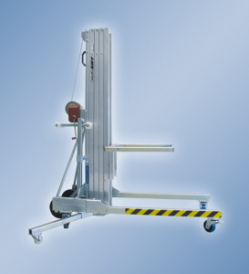 Ett pratiskt hjälpmedel vid tyngre lyft som balkar, rör, trummor etc. Höjning o sänkning sker med wirespel. Lätt att lasta genom bakre stödhjul och hjul på lyftstativet.