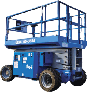Genie GS3369RT I stort lika som föregående lift 73-3263-00, men med andra mått enligt nedan. Liften är 4-hjulsdriven, dieseldriven utomhuslift med mycket stor framkomlighet. Utrustad med självnivellerande ben och 2 hastigheter som gör maskinen snabb, dessutom till ett lågt pris. Utrustad med motorvärmare som säkrar körning även i vintertid.