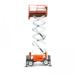 UpRight X32, allroundmaskin för något större ytor och höjder. Detta är en typisk inomhusgående lift men kan även användas utomhus med underlag som betong eller asfalt. Kan på full höjd köras, styras och höjdregleras från manöverbox på plattformen.