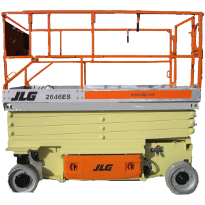JLG 2646ES i stort sett lika i mått som ovanstående 73-3122-00, men har däremot elektrisk framhjulsdrift som ger tyst, ren och mjuk drift och oöverträffad manöverbarhet. JLG har alltid ett högre inköpspris vilket ger något högre hyrespris.