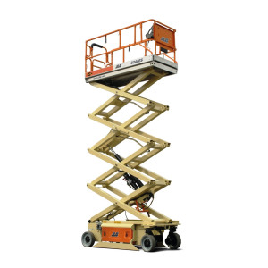 Saxlift för inomhusbruk. Går att köra utomhus på fast underlag som t.ex betongplatta eller asfalt.