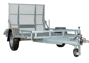 Lättlastad en-axlad släpvagn, specialanpassad för minigrävare och minidumper.