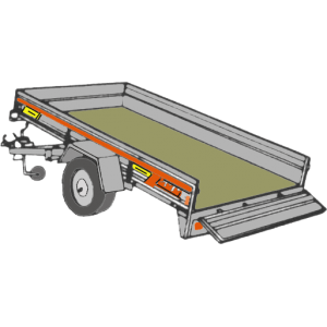 Släpvagn med tipp, totalvikt 750 kg, bromsad