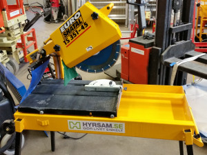 Lätt och portabel bordssåg med fällbara ben och transporthjul. Mycket passande för marksten och trädgårdsplattor.