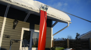 Med det tillhörande skaftet skjuter man upp själva hyveln från takfoten och upp mot nocken, snön kommer då att glida ner efter den 4m långa duken.