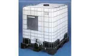 IBC behållare 1000L UN-godkänd för lagring och transport av farligt gods, behållaren ligger på en PE lastpall. Tanken är utrustad med en dränkpump för vatten med backventil