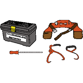 Innehåller verktygsbälte, lyftkrok, lyftsax, fällkil och fil.