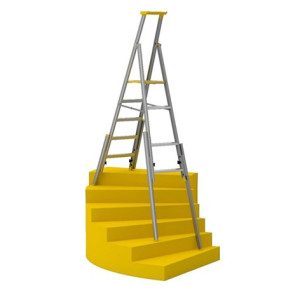 Flexibel trapphusstege för arbete i trappor och platser med ojämn stödyta. Alla ben kan justeras individuellt för stabil placering och säkert arbete.