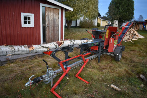 Din ved kommer bli klar snabbt, säkert och effektivt. Kapaciteten beror på vedens beskaffenhet och operatören. Den brukar ligga mellan 2 till 4 m³ ved i timmen.