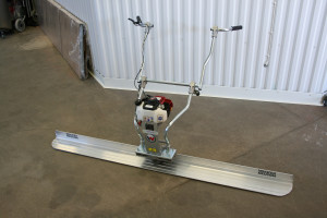 Vibratorbalken är en vibrationsavdragare. Den har en bensinmotor som får den excentriska vikten att rotera via en drivaxel och skapar vibrationer som förmedlas längs med bladet. Du styr vibratorbalken över nylagd betong med styrhandtaget.